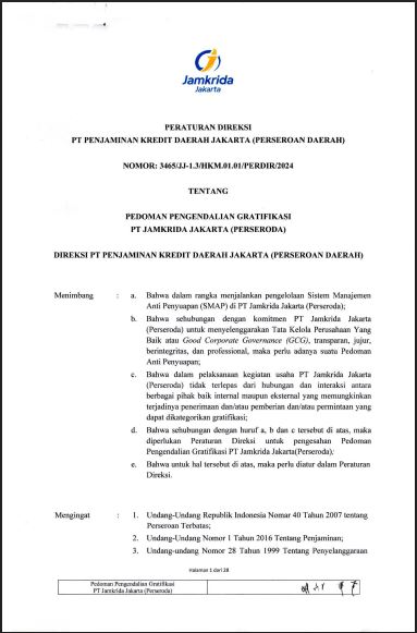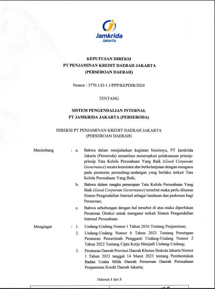 Pedoman tentang Pengadalian Internal Jamkrida Jakarta